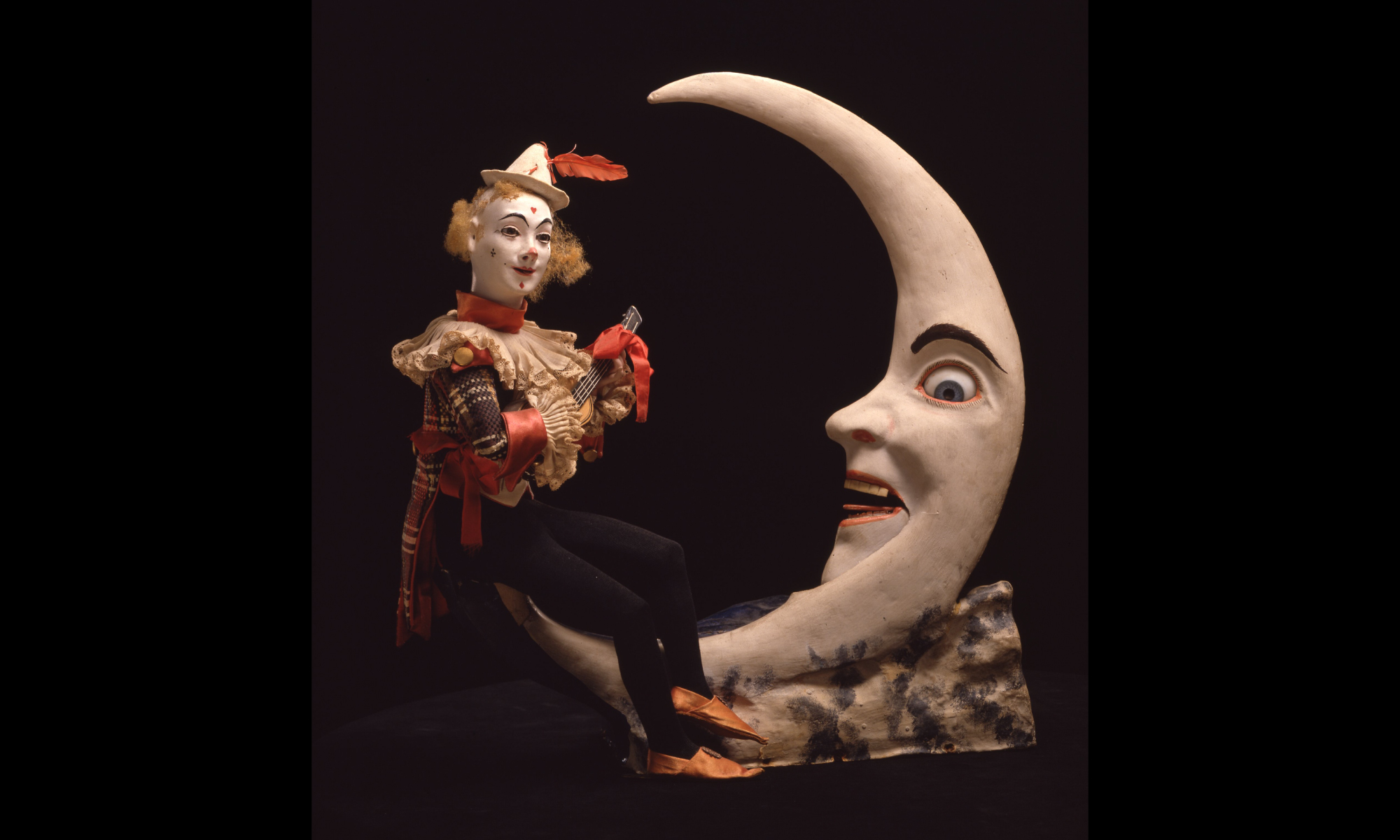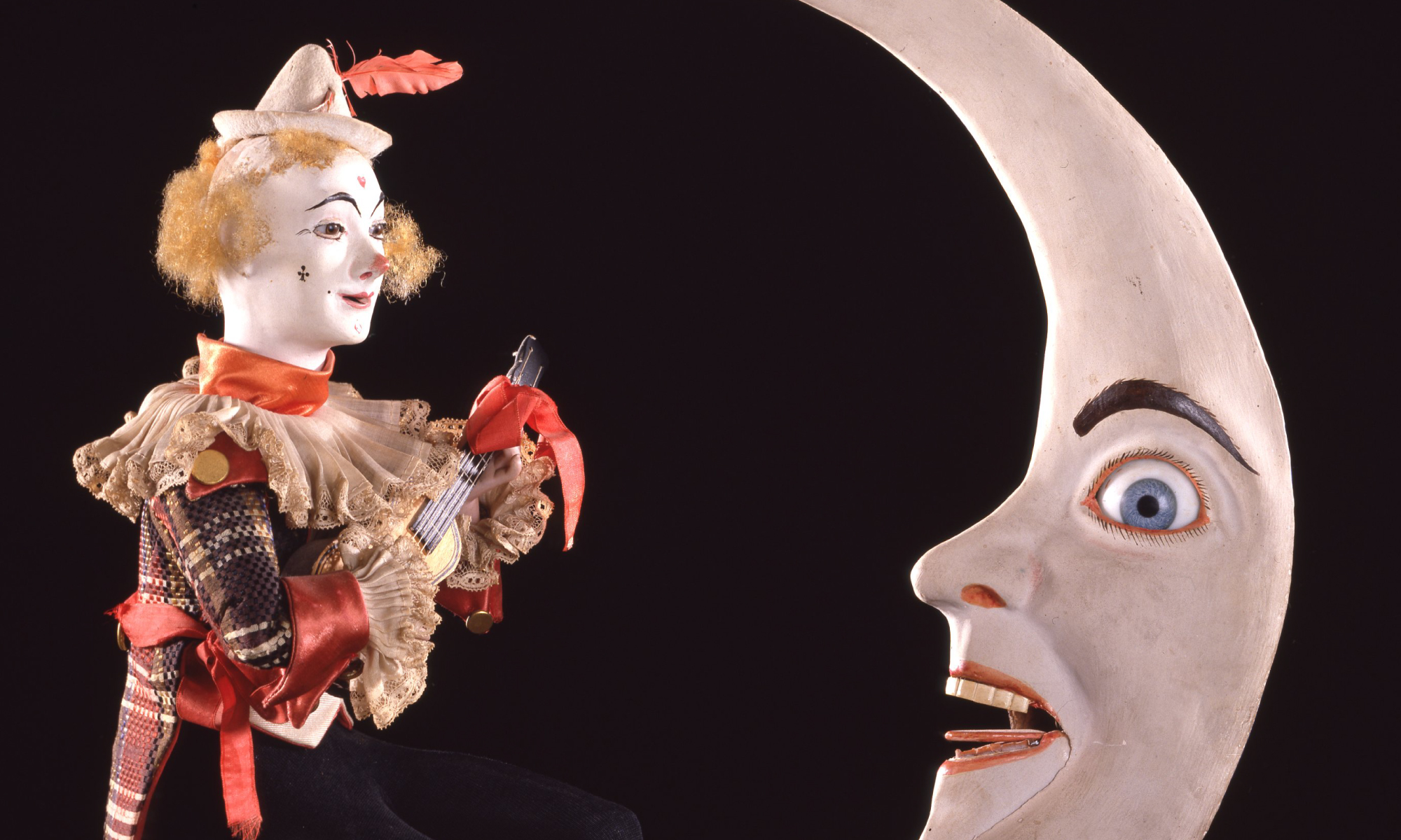 月に腰掛けギターを弾くピエロの歌声に月が目を覚まし一緒に歌い始める。